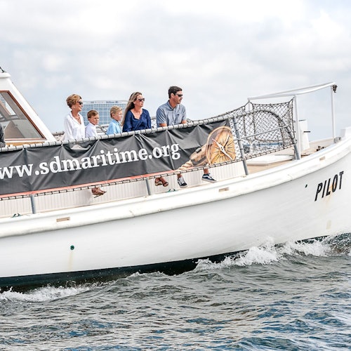 Restored by the Maritime Museum of San Diego and relaunched in 2002, San Diego’s chief pilot craft *Pilot* is an old lady with quite a story to tell! You'll learn all about this ship's amazing history on a scenic cruise around San Diego Bay, and see a lot of the city's most famous sites as you sail. Attractions you will see include: Lindbergh field, the Coast Guard station, North Island, Aircraft Carrier(s), City of Coronado, Coronado Bridge, Naval Amphibious Base Coronado, Tijuana/border, 24th Street Marine Terminal, Naval Station San Diego, shipyards, 10th Ave. Marine Terminal, Convention Center, Library, Petco Park, Seaport Village, Tuna Harbor, USO Park and more!