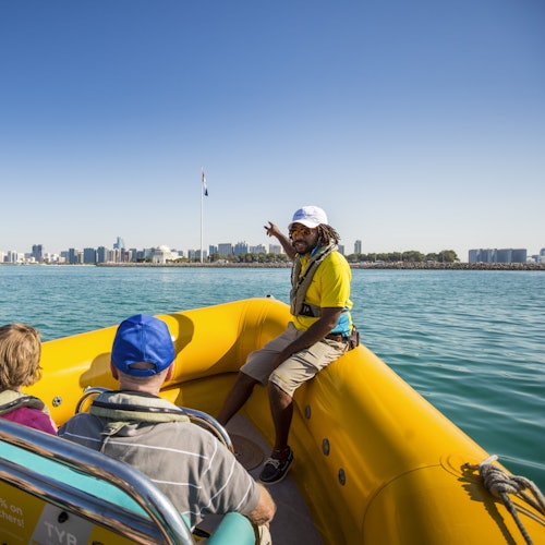 Get ready to glide along Abu Dhabi's waterways and see the best that Yas has to offer! Your skipper will give you a quick spin around the main sights inside a brilliant yellow RIB (rigid-inflatable boat). On top of great views, enjoy a quick rush of adrenaline as you bounce along the water and get a fresh blast of sea spray. There's plenty of time to stop for photos, so you can pose with Yas Marina, Yas Beach, Al Aldar HQ, and Al Bandar canal in the background.