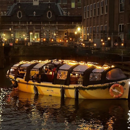 Join a 70-minute **Amsterdam Light Festival Tour** and see the light artworks around the city from the water. Knowledgeable guides share stories and history about Amsterdam as you relax with great views. Choose from a selection of drinks, including warm mulled wine. In a small group, you can chat with guides and other travelers. Perfect for friends and families. Discover hidden spots and canals that bigger boats miss, all the while enjoying the unique atmosphere of the Amsterdam Light Festival.