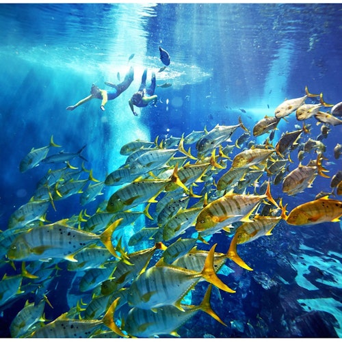 Using high-tech underwater helmets, you can now breathe underwater and surround yourself with 65,000 marine animals at the bottom of Dubai’s largest aquarium! This ticket includes your wetsuit, mask and snorkel, 20 minutes of swimming on the surface of the Ambassador Lagoon (Ultimate Snorkel) and a 30-minute underwater experience (AquaTrek Xtreme). Your tickets to The Lost Chamber Aquarium: Aquarium Experiences get you all the thrills of the ocean. From sharks to swooping rays, you'll meet thousands of colourful marine species in the mysterious depths of the lost city of Atlantis.