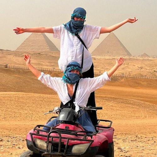 Climb aboard a zesty ATV and set off on a rip-roaring ride through the sun-baked desert encircling the majestic Giza Pyramids. The adventure begins with a convenient hotel pickup in either Cairo or Giza, where the friendly guide awaits to whisk away thrill-seekers. Upon arrival at the Giza Pyramids, the adrenaline starts pumping as explorers saddle up on their quad bikes, primed for discovery. Speeding over the undulating dunes at a thrilling 20-30mph, they'll experience the Great Pyramids from a completely fresh perspective. Once the exhilarating tour concludes, the guide ensures a safe and comfortable return to the hotel. So, why wait? Secure a spot on this unforgettable adventure and uncover a new way to experience the pyramids!