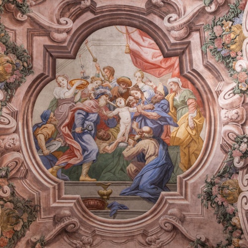 The Aula del Simonino, once called the Cappella del Simonino, is inside Palazzo Bortolazzi (Larcher-Fogazzaro) on Via del Simonino in Trento's historic center. Marina Larcher Fogazzaro donated it to FAI in 2018 for restoration and enhancement. The initial work focused on the façade, revealing 15th-century windows and restoring 18th-century painted figures and inscriptions. The Foundation then reorganized the interior to offer a 20-minute "sound narration" about the story of young Simone from Trento. The audio is available in Italian, English, French, and German.