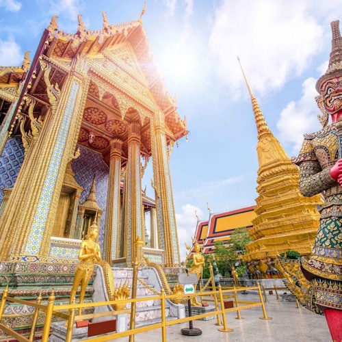 Visit Bangkok’s notable landmarks and cultural spots on this tour. Start with a guided visit to the Grand Palace, a historic site still used for royal ceremonies and state events. See the intricate architecture and hear its rich history before heading to Wat Phra Kaew, the most sacred Buddhist temple in Thailand, located within the Grand Palace grounds. Move on to Wat Phra Chetuphon, also known as the Temple of the Reclining Buddha, known for its traditional Thai massage education and marble illustrations. Then, go to Wat Arun, the Temple of Dawn, featuring a 70 m spire adorned with colorful glass and Chinese porcelain, located along the Chao Phraya River. Finish the tour at Tha Tien Market. Sample street food and take a stroll on the vibrant streets of the market.