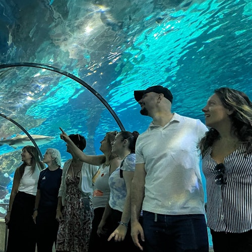 Explore L’Aquàrium de Barcelona with a guided tour that dives deep into the aquatic world. Discover everything from surface ecosystems to the Medes Islands marine reserve. The highlight of the tour is the Oceanarium—an 80-meter transparent tunnel where sharks, rays, moray eels, and more glide past in a fascinating display. The tour also features a gallery showcasing the world's most iconic tropical seas like the Red Sea, the Caribbean, and the Australian Great Barrier Reef. Don’t miss the penguin feeding time!
