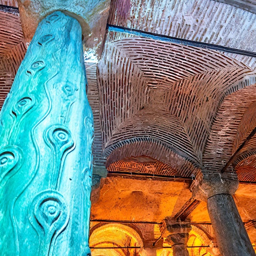 Explore the ancient Basilica Cistern with a fast-pass ticket. Skip the line and step onto the wooden platforms to see the historic structure. Observe the architectural design and the Medusa-head column bases, which are great for photos.