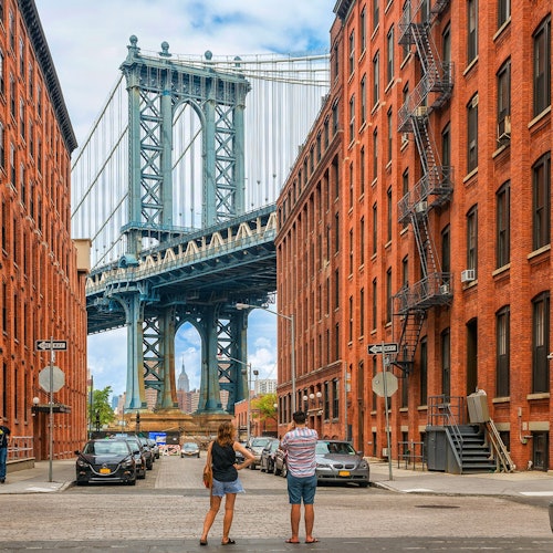 Begin your trip in Times Square. Ride through Midtown to see the Empire State Building and Madison Square Garden. Cross the Manhattan Bridge for views of the Brooklyn Bridge, the Statue of Liberty, and the city skyline. Arrive in Dumbo, Brooklyn. Walk on cobblestone streets and along the waterfront, and visit the Jacques Torres Chocolatier for a chocolate tasting. Explore local shops, street art, and parks. Discover what makes Dumbo unique and see the city from new angles.