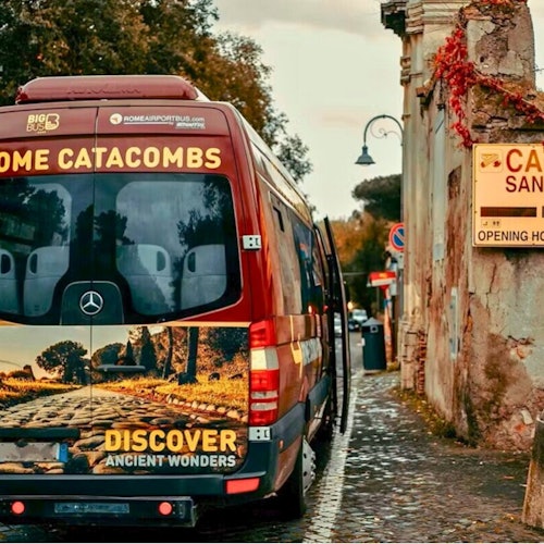 Join an exciting Catacombs experience as you travel along Rome's historic Appian Way, tracing the footsteps of history. Explore iconic landmarks such as the Baths of Caracalla, the Colosseum, the Fosse Ardeatine, and the Caffarella Park. Explore the Catacombs of San Sebastiano with an expert guide, navigating maze-like tunnels and chambers of these underground sanctuaries. Learn fascinating stories and uncover hidden secrets that bring the past to life. Continue the adventure aboard a minibus, where a digital audio guide will provide fascinating tales about the passing landmarks, deepening your understanding of this historical tour.