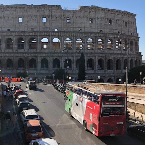 Begin at the Touristation Ara Coeli office, Piazza Ara Coeli 16, with a 30-minute 3D video about ancient Rome. Then, explore the Roman Forum. The Touristation staff will assist with entry. Discover once-vibrant temples and monuments, gaining insight into Roman life and architecture. Continue to Palatine Hill, where Rome's elite once lived. Imagine their daily lives while walking among the ruins. Visit the Colosseum approximately two hours after your booking. Explore this iconic Roman amphitheater and marvel at its impressive arches. Complete your journey with an open-top bus tour. Choose your starting point, including a stop near the Colosseum. Enjoy views of the city's landmarks with the audio guide.