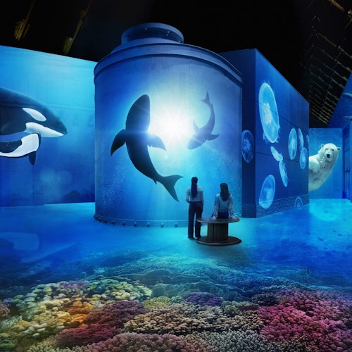 Visit the Fabrique des Lumières in Amsterdam's Westergas park for a unique digital art experience. See ocean life up close at _The Sea_ exhibition. Look beneath the surface to explore different ocean habitats and marine creatures. Observe coral reefs, schools of fish, and playful dolphins. Encounter blue whales, orcas, and sperm whales. The exhibition is created in collaboration with Greenpeace to emphasize the importance of marine conservation. Learn about the urgent need to protect our oceans.