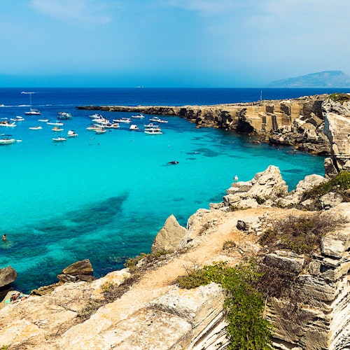 Enjoy a fun-filled day exploring the islands of Favignana and Levanzo. Join a small group for a boat tour through clear waters, swim in beautiful spots, and discover hidden gems like Cala Rossa and Cala Azzurra. Taste a local pane cunzato meal and relax with an aperitif and music.