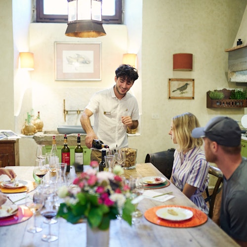 Experience the enchanting Malenchini estate and explore the villa's breathtaking outdoor spaces and wine cellars. The adventure culminates in a delightful light lunch, served in the quintessential Tuscan style. Savor the traditional menu, bursting with the flavors of Tuscan gastronomic specialties, expertly paired with three wines that sing the true essence of the region. On the table, expect a mouthwatering selection of local charcuterie and cheeses, followed by a classic Tuscan first course. The feast concludes with a swig of the famed Chianti DOC Vinsanto, perfectly complemented by Prato biscuits.