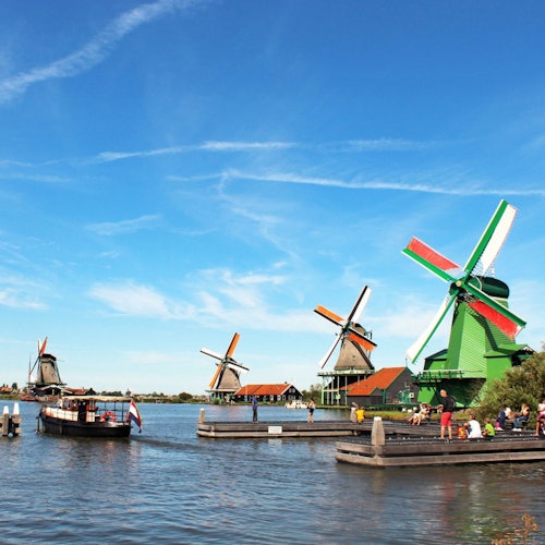 Leave the canal houses and bustling streets of Amsterdam in the rearview and head out to Zaanse Schans and the Dutch countryside for a day. Meet in Amsterdam and travel by luxury coach to the windmill village of the Netherlands, complete with staff dressed in traditional Dutch costume. The SmartWalk guide ensures you don't miss out on any important landmarks or attractions, making navigation hassle-free. Working windmills, historic Dutch cottages, canals, clog-making demonstrations and cheese tasting can all be found in Zaanse Schans!