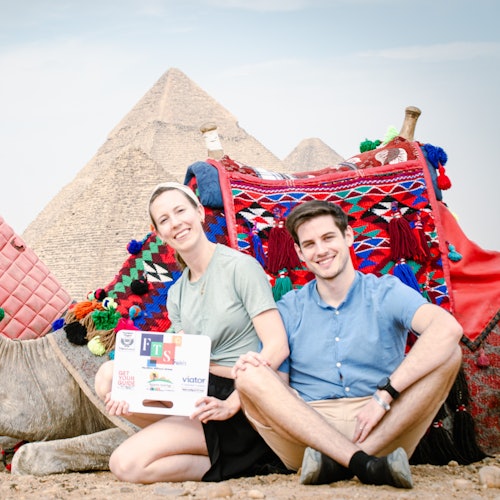 Prepare for a tour of the Pyramids of Giza and visit the Pyramids of Cheops, Chephren, and Mykerinus. Learn about their history, as these are the only surviving wonders of the ancient world. Take a 15-minute camel ride in the desert with help from your guide and capture photos during this activity. Visit the Great Sphinx, which has the head of a pharaoh and a lion's body, to understand its role in guarding the pyramids. Visit the Valley Temple near the Pyramids of Chephren. After the tour, have lunch at a restaurant, trying local cuisine. Return to your hotel in Cairo, ending the half-day tour.