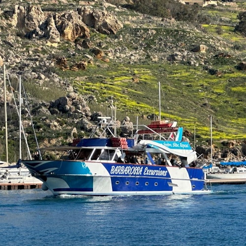 Join a day tour on the waters of Malta, starting from Mgarr Harbour in Gozo and Malta at Marfa Jetty. Go to the Blue Lagoon on Comino, anchoring for 1 hour and 30 minutes. On the way, pass Santa Maria Battery, Elephant Rock, St. Marija Bay, St. Marija Caves, and St. Nicholas Bay. Swim in clear water or take a powerboat trip to nearby caves (available at an additional cost). Walk across Comino Island to see its landscapes, and next go to Crystal Lagoon.