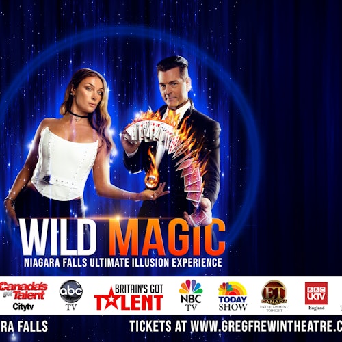 Visit the Greg Frewin Theatrical Centre in Niagara Falls to see Wild Magic, a 90-minute live magic show featuring Greg Frewin, an International Grand Champion of Magic, and Alexandra, known as Canada’s Lady of Magic. The show includes large-scale illusions, close-up magic, and a simple story that appeals to all ages. The theatre seats 550 people, is fully wheelchair accessible, and offers the option to upgrade your ticket to include a buffet dinner before the show. There’s also a concession stand, bar service, and a Magic Shop for souvenirs. Wild Magic is the longest-running show in Niagara Falls and has hosted over a million guests. It's perfect for couples, families, and groups looking for an entertaining evening.