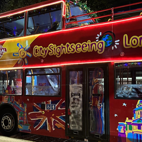 Hop on an open-top double-decker bus to see London's twinkling Christmas lights