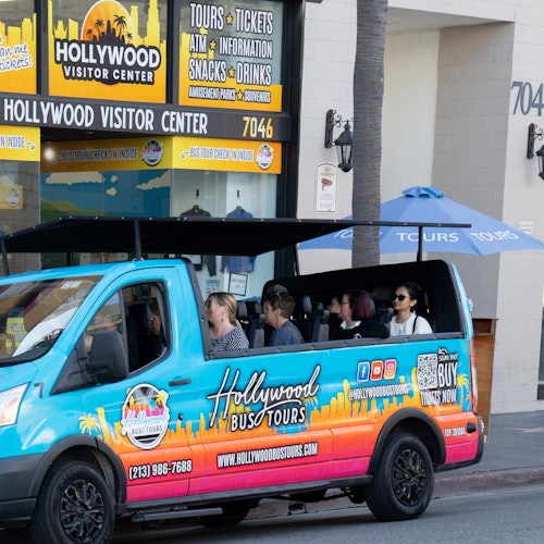 Prepare for a two-hour tour of celebrity homes on an open-air bus. Your guide will share information and point out photo opportunities along the way. You’ll see the Hollywood Sign, Walk of Fame, Beverly Hills, Sunset Strip, Rodeo Drive, West Hollywood, and several celebrity homes and hangouts. The route goes through Hollywood, Hollywood Hills, Sunset Strip, West Hollywood, and Beverly Hills. You'll also see filming locations. This tour covers key spots that highlight Los Angeles as a center for entertainment. Also, the tour has a 10-15 minute stop at the Beverly Hills Sign.