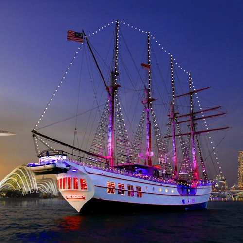 Set sail across Singapore's port aboard the Royal Albatross. This four-masted tall ship, with 22 sails, is ready to take you on a memorable journey. Departing from Resorts World Sentosa, each cruise offers a look into the history of seafaring and the secrets of navigation from the age of discovery. Choose from a morning voyage, a romantic sunset sail, or an evening journey. Enjoy a dining experience while you relax in comfort. Get ready for a unique and fun adventure. Come aboard and let's make some waves!