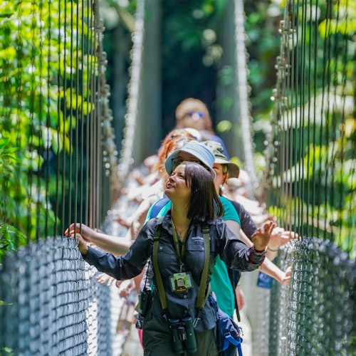 Pristine waterfalls, an endless expanse of green rainforest, and the chance to see sloths peacefully hanging around in their natural habitat. Could this be paradise? The Mistico Hanging Bridges Walk is a comfortable, non-slip trail through the Costa Rican canopies. Let the stunning local flora and fauna revitalize you, and admire some of the most impressive natural beauty on the planet.