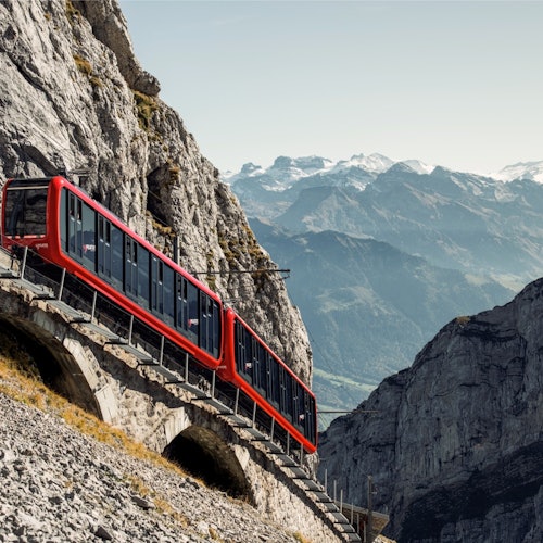 Prepare for an exciting adventure starting from Lucerne. Begin by catching bus number 1 at the train depot for an 11-minute ride to "Kriens, Zentrum Pilatus." From there, take a short walk to reach the valley station of the panoramic gondola. Enjoy a 15-minute ride to the middle station Krienseregg, offering scenic views. Then, hop on the cable car for another 15-minute ride to Fräkmüntegg. For adventure-seekers, there's an option to visit the rope park at Fräkmüntegg (additional cost). Next, board the "Dragon Ride" aerial cableway for an exciting 5-minute ascent to Pilatus Kulm. Enjoy the highlight of the trip with a ride on the world's steepest cogwheel railway from Pilatus Kulm to Alpnachstad. Finally, relax on a train ride back to Lucerne. You can also take the trip in reverse, starting with the train from Lucerne. Just be sure to check the timetable beforehand.