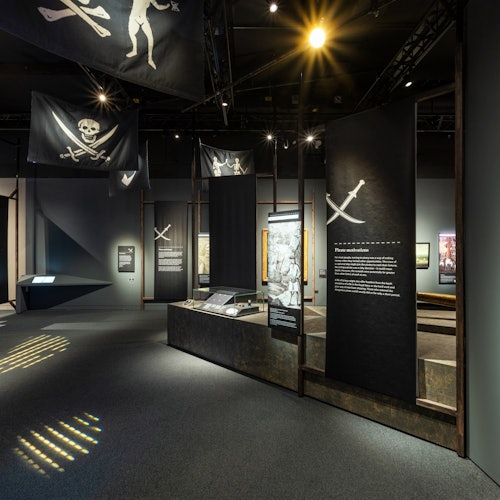 Visit the exhibition to learn about piracy in popular culture. See characters like Captain Pugwash, Captain Hook, Long John Silver, and Captain Jack Sparrow. Understand why the idea of a pirate's life still captures interest. Discover the real history of pirates, which is more complex than their fictional portrayals. Follow the global history of piracy from the South China Sea to the coast of North Africa. Learn about modern piracy issues affecting seafarers today. Read about real-life figures such as Edward 'Blackbeard' Teach, William Kidd, Anne Bonny, and Mary Read. See how perceptions of pirates have shifted over time.