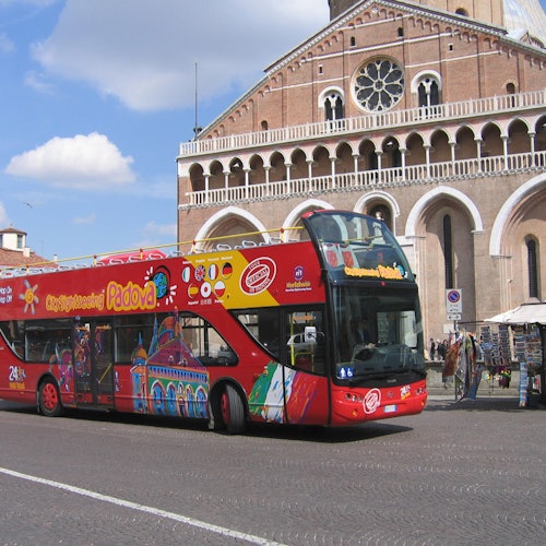 Explore Padua with a hop-on hop-off bus tour. Board and get off the bus at your leisure, with stops along the route. Visit the impressive Basilica of St. Anthony, renowned for its Romanesque architecture and Gothic-style additions from the 13th century. Discover the historic University of Padua, filled with intriguing stories. Then, head to the vibrant Piazza delle Erbe, overlooked by the Palazzo della Ragione. The Palazzo, a landmark dating back to 1218, was once the seat of the city courts. It has a unique roof shaped like an upside-down ship's hull. Witness the piazza's lively atmosphere, from a busy vegetable market during the day to a bustling café scene at night.