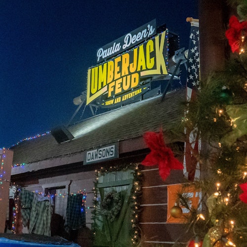 Get ready for a night of eating like a true lumberjack at Paula Deen’s Lumberjack Feud Supper Show in Pigeon Forge. Enjoy an all-you-can-eat buffet with BBQ pulled pork, mac and cheese, baked beans, warm dinner rolls, a dessert, and bottomless fountain drinks. While you feast, watch an authentic, live lumberjack competition between the feuding Dawson and McGraw families. Be captivated by over a dozen events like axe throwing, chopping, sawing, speed climbing, and log rolling. Heckling and interacting with these ESPN Athletes is encouraged!