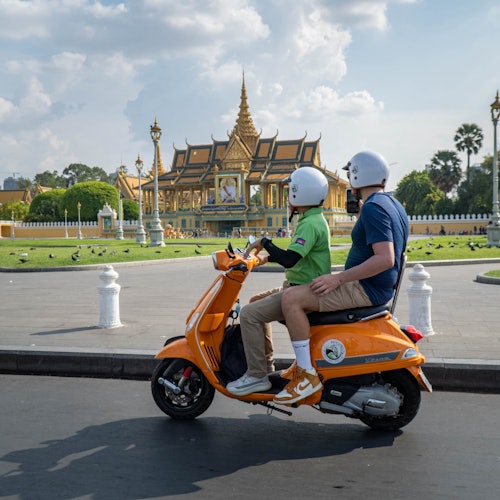Explore Phnom Penh with a Vespa tour that combines sightseeing and cultural immersion. Guided by experienced tour guides, navigate through backstreets and narrow alleyways to discover the city’s history and heritage. Visit the Royal Palace, the Silver Pagoda, the National Museum, and the Tuol Sleng Genocide Museum. As the Vespa moves through the lively streets, learn about the events that have shaped the city's character. This journey connects travelers with the spirit of the Cambodian capital.