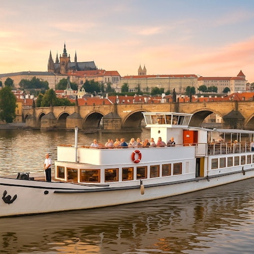 Take a cruise to see old Prague and its monuments from a historic ship built a century ago. This 60-minute tour will show you Prague's landmarks while you enjoy a typical Czech dessert and a drink. QR codes around the ship let you load audio guides onto your phone. Choose between historical details about the sights or modern stories about the river, cruise ships, and boats.