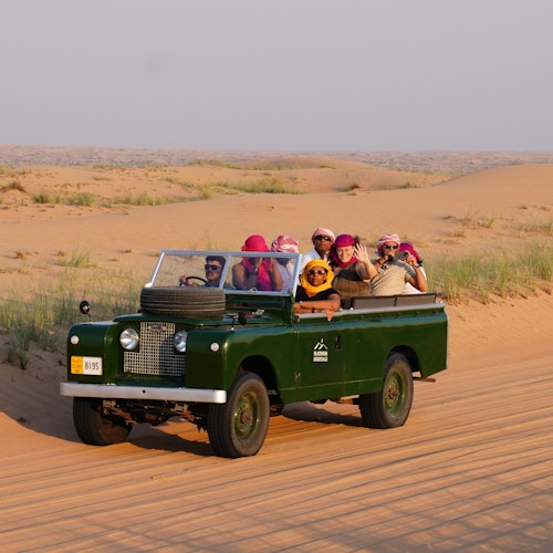 Get ready for the ride of a lifetime on Dubai's top-rated desert safari! Venture into the heart of the Dubai Desert Conservation Drive, where a seasoned conservation guide will point out desert flora and Bedouin survival tactics for you. Stand in awe as the sun paints the Arabian sky with vibrant hues, and watch a falconry show. Feast on a 4-course Emirati dinner, perfectly complemented by the aromas of shisha and the rhythm of traditional performances. Tailor your desert escapade to your taste: traverse the sandy expanse in a vintage Land Rover, or join the steady pace of a camel caravan.