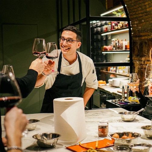 Learn to make pasta from scratch in this master class. Follow step-by-step instructions to create pasta dough, mix ingredients, make filling, and add sauce. With expert chefs guiding you, roll, cut, and fill your ravioli. The activity also includes unlimited wine, paired with your meal. Select from various high-quality wines to complement the ravioli. The class is held near the Colosseum, offering views of this historic landmark as you cook and dine. Enjoy the proximity to one of Rome's most famous monuments while preparing and eating an authentic Italian meal.