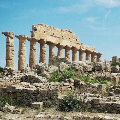 Selinunte, named after the wild parsley (selinon) that grows by the Modion River, was founded around 650 BC by settlers from Megara Hyblaia. The city's architecture spread across two hills with a fortified Acropolis filled with temples and homes and a large settlement on Manuzza Hill featuring a central marketplace. Explore the archaeological site within the historic ruins of Selinunte, an ancient city overtaken by the Romans. Walk among the ruins of grand temples, offering beautiful views of the sea. At the top of the Acropolis, you'll find an 8 m high wall that once guided seafarers.