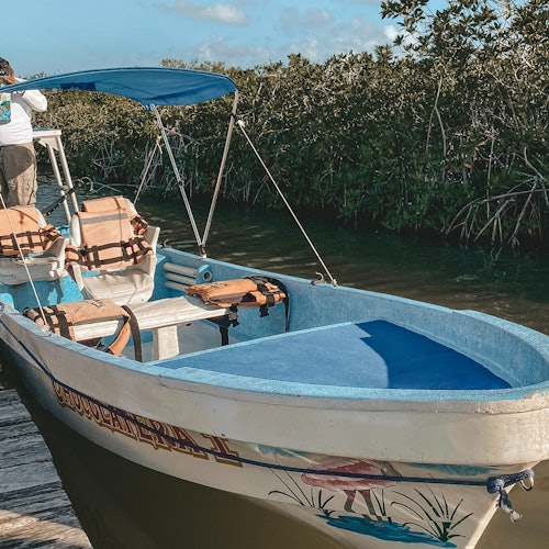 Discover Sian Ka'an, the UNESCO World Heritage Site that combines diverse ecosystems, creating a habitat for a wide array of fish, mammal, birds, and reptiles, all interconnected by enchanting waterways. Your journey begins with a drive along a narrow strip of sand (dune), flanked by untouched beachfront, lagoons, and lush coastal greenery, leading you to the Boca Paila lagoon, situated approximately 8 km within the biosphere. Here, you'll board a small boat to explore the Boca Paila bridge, a critical convergence point for numerous animals, offering up the opportunity to spot birds, crocodiles, and even manatees. Depending on the weather, you'll have the chance to snorkel in the Mesoamerican Barrier Reef, where vibrant corals and fish await your delight. If sea conditions are unsuitable for snorkeling, you'll visit a stunning open cenote instead.