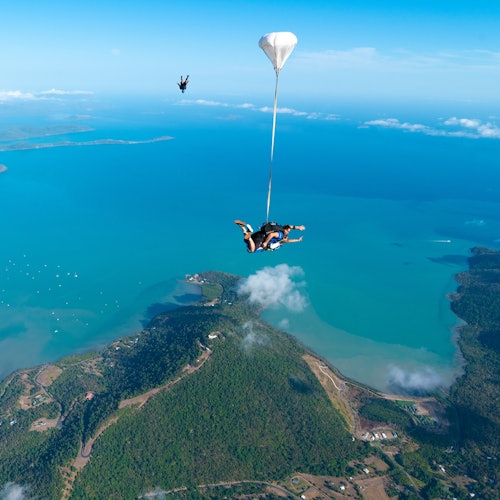 Take a thrilling leap of faith and tandem skydive over Airlie Beach, marvelling at the world-famous Whitsunday Islands as you free-fall from up to 15,000 feet! Experience the ultimate thrill of free-fall at over 200 km/hr for up to an insane 60 seconds, and then float under the canopy for 5-7 minutes soaking up the unbeatable views of Tropical North Queensland, the islands, and Airlie Beach. Skydive in Airlie Beach with the best views, best locations, best customer service, and the best instructors! You're in safe skies with the Skydive Australia crew, so step outside your comfort zone and push your personal boundaries with a skydive experience you’ll remember forever.