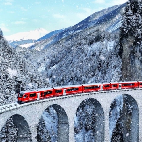 Join a 1-day trip from Milan with the "Bernina Red Train" ride. Start with an air-conditioned bus transfer from the meeting point to the Swiss town of St. Moritz. Once there, spend time exploring the city at your own pace. Try chocolates at a well-known pastry shop or visit high-end stores. Afterward, take the "Bernina Express" to see the Alps. This 2-hour and 20-minute train ride, the highest in Europe, will take you through the Alps to Tirano. Get a guided explanation during the train ride. End the day with a return transfer from Tirano to Milan. Note that the itinerary could be reversed.
