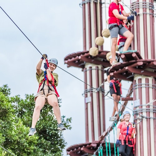 Prepare yourself for an exciting adventure as you take on seven thrilling circuits across four levels. With a total of 145 airborne challenges, this experience is not for the faint of heart! Enjoy the exhilaration of soaring through 16 ziplines, reaching up to 130m over Cornmeal Creek. As you climb higher, the excitement builds.