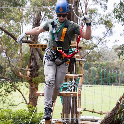 Join a 2.5-hour adventure at St Ives Showground with treetop courses and the sound of kookaburras. Safety and excitement are balanced with courses designed for all skill levels. Explore the southern border of Ku-ring-gai National Park at the Tree Ropes Course Park, featuring over 95 aerial obstacles and more than 10 ziplines. Challenges range from 1 meter for young climbers to 15 meters for daring adventurers, offering something for everyone.