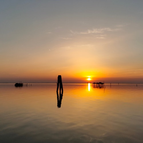 Enjoy a boat ride along the Venetian Lagoon, ideal for couples and photography enthusiasts. Leave the busy city behind and head towards Ca’ Roman, a hidden gem in the lagoon. Stop at a quiet spot to enjoy the peaceful atmosphere and panoramic views of the sunset over the horizon.