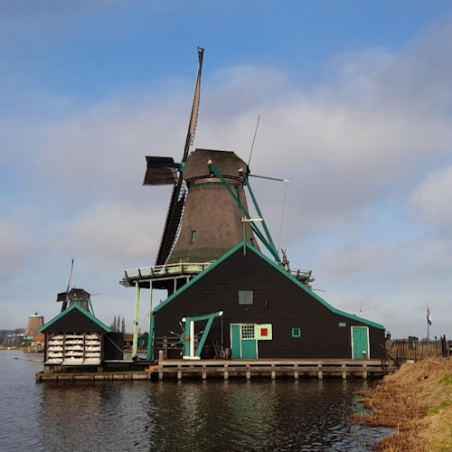 Visit the historic windmills of Zaanse Schans with a professional guide from Amsterdam. Learn about Gouda cheese production and taste its butter. See windmills from the 18th century, including a working mill used for producing cocoa powder and other goods. View the wooden houses and old shops painted in traditional green, beige, and blue. Explore the homes of merchants and mill owners. The open-air museum includes windmills, barns, workshops, and museums from the 18th and 19th centuries.