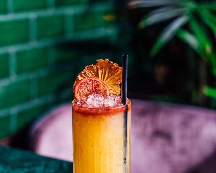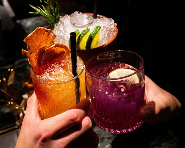 Members receive a complimentary round of house cocktails with purchase of entrées.