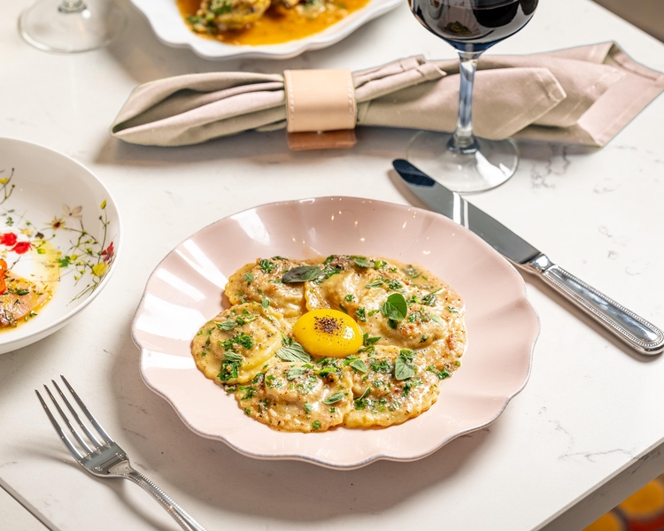 Members and their guests receive a complimentary round of house wine or Champagne with purchase of entrées.
