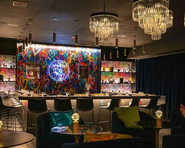 Sushi by Bou offers a high energy and reimagined take on the traditional Japanese omakase experience within its uniquely themed East Village location. Known for its signature 30 minute and 60 minute timed seatings, this culinary destination provides a fast paced yet luxurious journey through expertly crafted pieces of nigiri. The East Village venue is particularly famous for its 1920s speakeasy aesthetic, featuring an intimate four seat counter hidden behind a discreet entrance for an ultra exclusive feel. This innovative brand has been widely recognized for making premium sushi accessible and fun, earning accolades from top food critics for its high quality fish and vibrant atmosphere. Whether enjoying their classic sake pairings or a handcrafted cocktail, guests are treated to a masterclass in modern hospitality and world class culinary artistry.