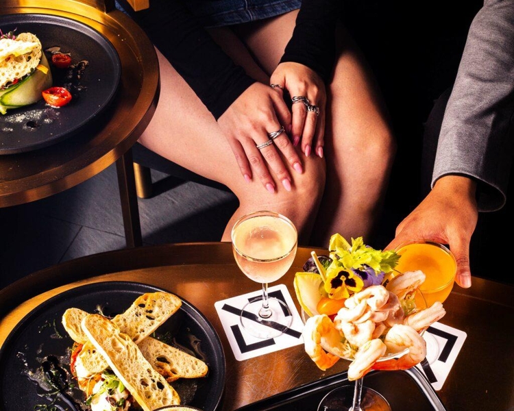 Members and their guests receive a complimentary round of house sparkling wine with the purchase of entrées.