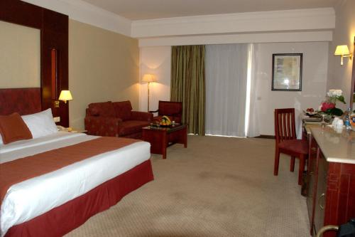 A 10-minute walk from the Nile River embankment, Safir hotel in Cairo’s city center offers luxurious rooms with balconies. It features an outdoor pool, gym and free Wi-Fi in public areas. Each air-conditioned room is spacious and includes a work desk, satellite TV and mini-bar. The private bathrooms come with a bathtub and hairdryer, and some rooms have a seating area. Guests can relax in Safir’s sauna and hot tub at the hotel’s spa area, where massage treatments are also available. The outdoor pool invites for a refreshing dove or a sunbath on the poolside loungers. Safir Cairo features a terrace café and restaurants offering International, and Oriental cuisine. There is also a bar offering a wide range of drinks. The Great Pyramids of Giza are a 30-minute drive from the hotel. Dokki Metro Station is 1640 feet away.
