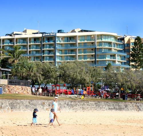 Landmark Resort features a beachfront location on the Esplanade in Mooloolaba. It offers modern apartments and studio's. It features a swimming pool, rooftop spa pool, sauna and spa and wellness center. Landmark Mooloolaba Resort offers well-appointed studios and spacious apartments with modern kitchens and laundry facilities. Initial provisions such as tea and coffee are provided on arrival. Guests can exercise in the fitness center or prepare a casual meal in the barbecue area. Landmark Resort is a 1-hour drive from Brisbane Airport. Sunshine Coast Airport is 20 minutes’ drive away.