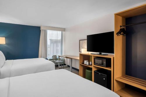 Located in Richardson, Texas, this hotel is 13 mi from Downtown Dallas. It features an outdoor pool on site and complimentary WiFi. Spark by Hilton Richardson Dallas offers complimentary continental breakfast and each room includes a microwave, fridge, and coffee and tea-making facilities. Other amenities include cable TV, ironing facilities and a hairdryer. Guests can also take advantage of the on-site gym and business center. This property has a 24-hour reception. The University of Texas at Dallas is just 1.9 mi away from Spark by Hilton Richardson Dallas. Fair Park and the Cotton Bowl Stadium are both 17 mi away. Dallas Love Field Airport is 20 minutes’ drive away.