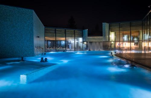 Directly linked to the Gruyère Spa via an underground hallway, the Hotel Cailler has charming country-style rooms and fine cuisine. The Gruyère spa includes a Turkish bath and sauna area, great pools and numerous other spa facilities. A sports center is located nearby as well. In addition to nicely furnished double rooms, you can also opt for a spacious junior suite or an apartment with a living room. The 2 restaurants in the Cailler hotel serve delicious Swiss and international cuisine, prepared using seasonal ingredients.