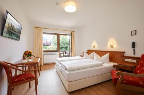 This family-run hotel close to Garmisch-Partenkirchen invites you to enjoy a hiking or skiing vacation in the alps. The Hotel Garni Zugspitz has a characteristic alpine style and individually furnished rooms with a seating area, high speed WiFi and smart tv. Some rooms have balconies with great views of the bavarian alps. Enjoy a range of activities in the surrounding mountains, or simply relax on your balcony, or on the terrace. Guests staying at Hotel Garni Zugspitz can also take use the bus to Garmisch, Linderhof, Oberammergau, Mittenwald and Füssen free of charge. The bus stop and train station are close to the hotel.