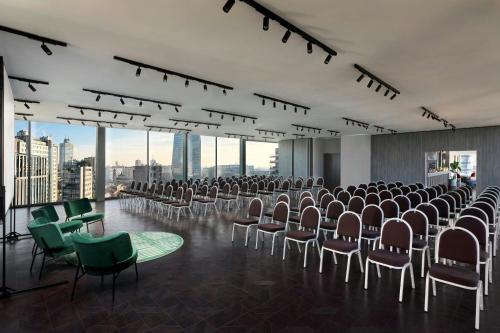 Duo Milan Porta Nuova, a Tribute Portfolio Hotel is a 5-minute walk from Milano Centrale Station and the shuttle bus terminal for the 3 main airports. It offers nonsmoking rooms with satellite TV and tea/coffee making facilities. This 4-star hotel is part of the Marriott International chain. It has a fitness center and a lobby lounge with drinks, snacks and aperitifs. Room service is available 24 hours a day and WiFi is free throughout. All rooms are soundproofed, and come with air conditioning, soft carpeted floors, and classic wooden furniture. The private bathrooms are complete with bath and shower. There is free mineral water in the mini-bars. The restaurant is open every day, and serves Italian and international dishes. Breakfast is an American buffet.