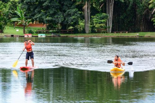 Areia Que Canta is a farm offering 4-star accommodations in Brotas, 149 mi from Sao Paulo. It features many activities, such as tennis. Free WiFi is provided. The restaurant in the property serves a rich homemade buffet breakfast, in an ample room with lake views. Lunch and dinner menus are based on local culinary prepared in wood burning oven. Cakes, fruit compotes and grilled fish are some of its highlights. The accommodations at Fazenda Hotel Areia Que Canta provides modern amenities. Air-conditioned rooms are equipped with mini-bar, telephone and flat-screen TV. Each has a balcony with a hammock and lake views. For a true experience of living in a Brazilian farm. Kids can visit the mini farm and have environmental education classes. There is birdwatching, involving 200 species of birds. In the waters of Tamanduá River, guests can enjoy natural hydromassage. Areia Que Canta also offers 5 swimming pools in total, with 4 of them heated and a lake with activities such as: row boat, mini kayak, paddle boat, standup paddleboarding, zip line, and sport fishing. There's a beach volleyball court, a soccer field, a basketball hoop, and a mini-golf course. It is possible to take a ride on a horse wagon. A games room is another leisure option. There's an SPA house with a gym and a private pool. Brotas is a region well-known for its many rivers and cascades, where tourists can practice a great variety of water sports.